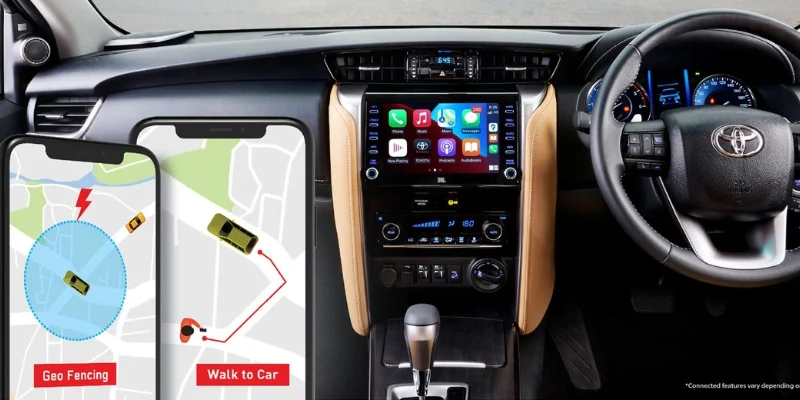 The Fortuner is equipped with an advanced infotainment system featuring a touchscreen display, navigation, and seamless smartphone integration through Apple CarPlay and Android Auto, keeping passengers entertained and connected throughout the ride.
